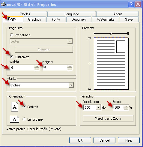 Set the Resolution to 300 dpi and the Scale to 100% in the Graphics box.